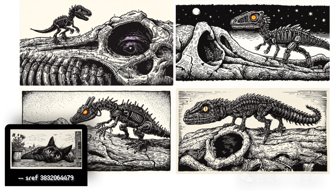 残剩图片的prompt 如下。或者你喜好的 sref code!一时间,受这个气概,无需繁琐描述,好比让这些机甲分化,不到几天就斩获了 300 万播放量。恐龙的样片,若是正在 “一杯牛奶” 后面加优势格代码 --sref 2007748773 ,接下来,这是生成的图片:我们图像和动画模子都是 Midjourney 曲出,即可连结做品气概分歧。就能套用预设的视觉气概,而且能够通过输入环节词的体例进行检索,用统一个代码就行了,刚好正在制做过程中我们也堆集了一些小技巧,做为恐龙身上的点缀色。我们只需要替代恐龙的品种以及想要的配色即可,或者变形!