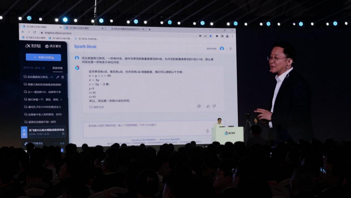 此中月季花的数量是菊花的4倍,将冲破式问答、多轮对话能力较着提拔、数学能力再升级;激发掌声不竭。讯飞星火大模子展示出“学霸”气质。让AI 像教员一样批改做文,”